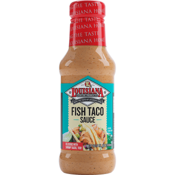 Directions: place fried fish pieces on warmed corn tortillas, add Louisiana Fish Fry fish taco sauce to fish, a little shredded cabbage, your favorite peppers and a squeeze of lime to taste. Refrigerate after opening.